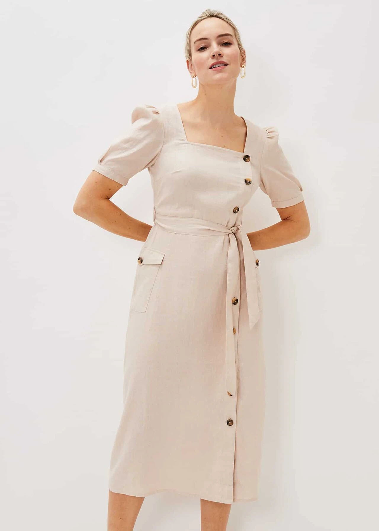 Elletta Square Neck Linen Dress
