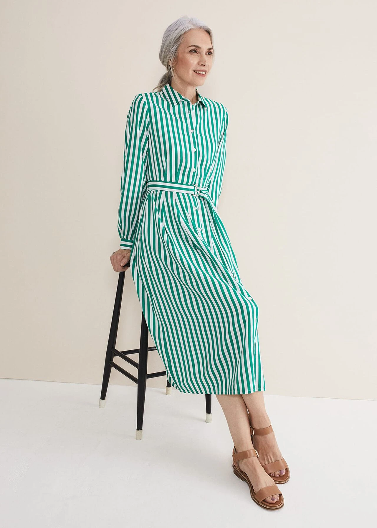 Ida Stripe Shirt Midi Dress