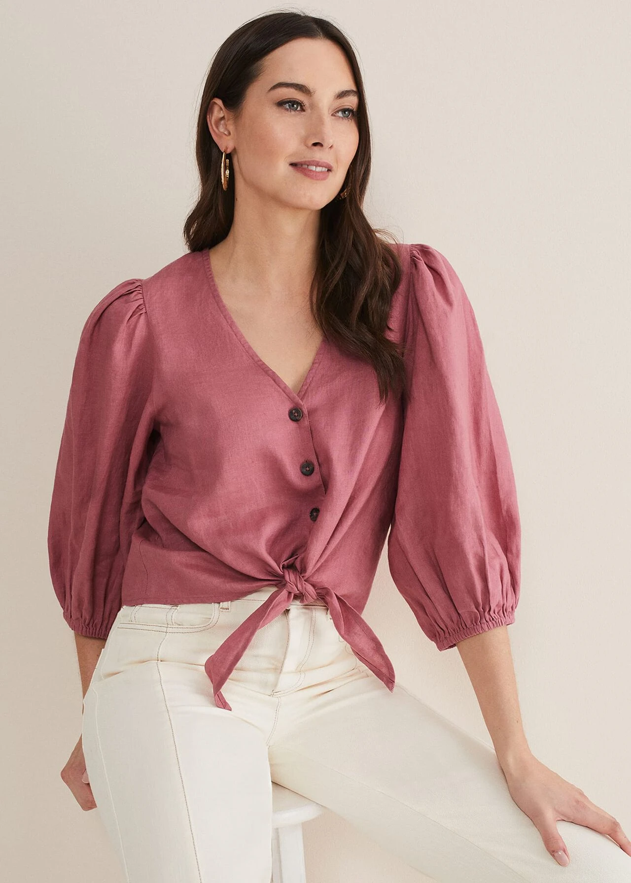 Raven Linen Tie Front Blouse