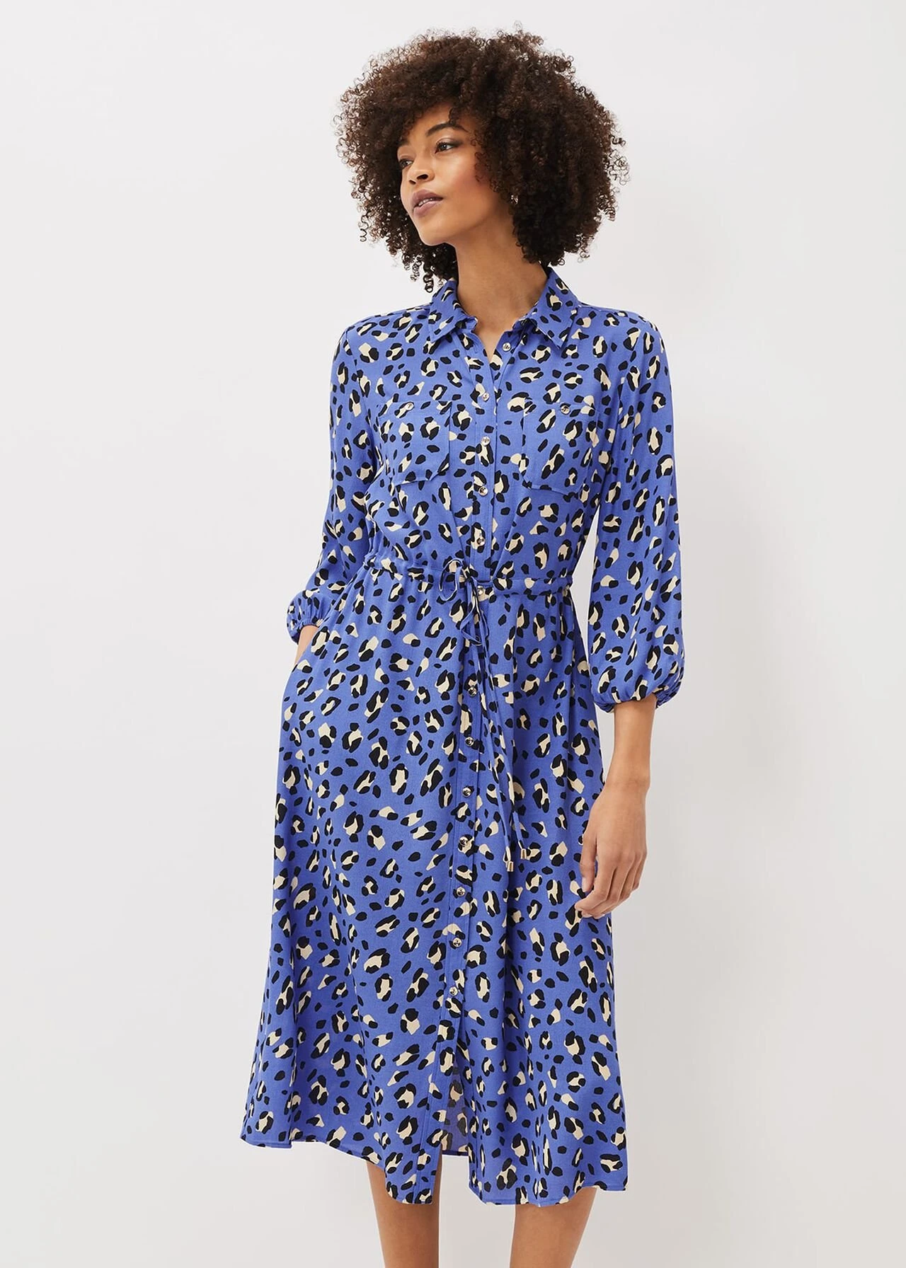 Tana Leopard Print Midi Shirt Dress